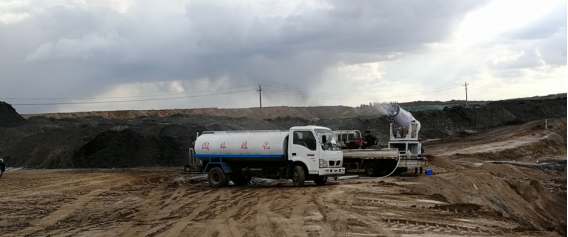 該項目儲灰場完工部分已覆土綠化,一號沉坑正在逐步進行回填。施工現(xiàn)場對一號沉坑臨時堆存的粉煤灰進行苫蓋,并采取灑水、噴霧降塵措施, 2臺灑水車、1臺移動式噴霧機持續(xù)灑水作業(yè),防治揚塵效果有所改善。