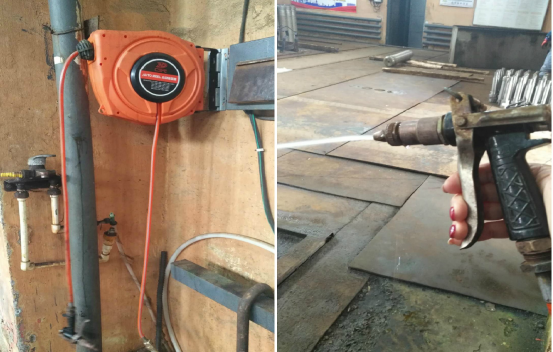 2019年1月份, 機械制造公司在電鍍車間 操作平臺附近的墻上安裝了水管自動回縮卷管噴槍機構(gòu),有效減少了清洗水的使用量,減少了廢水排放。