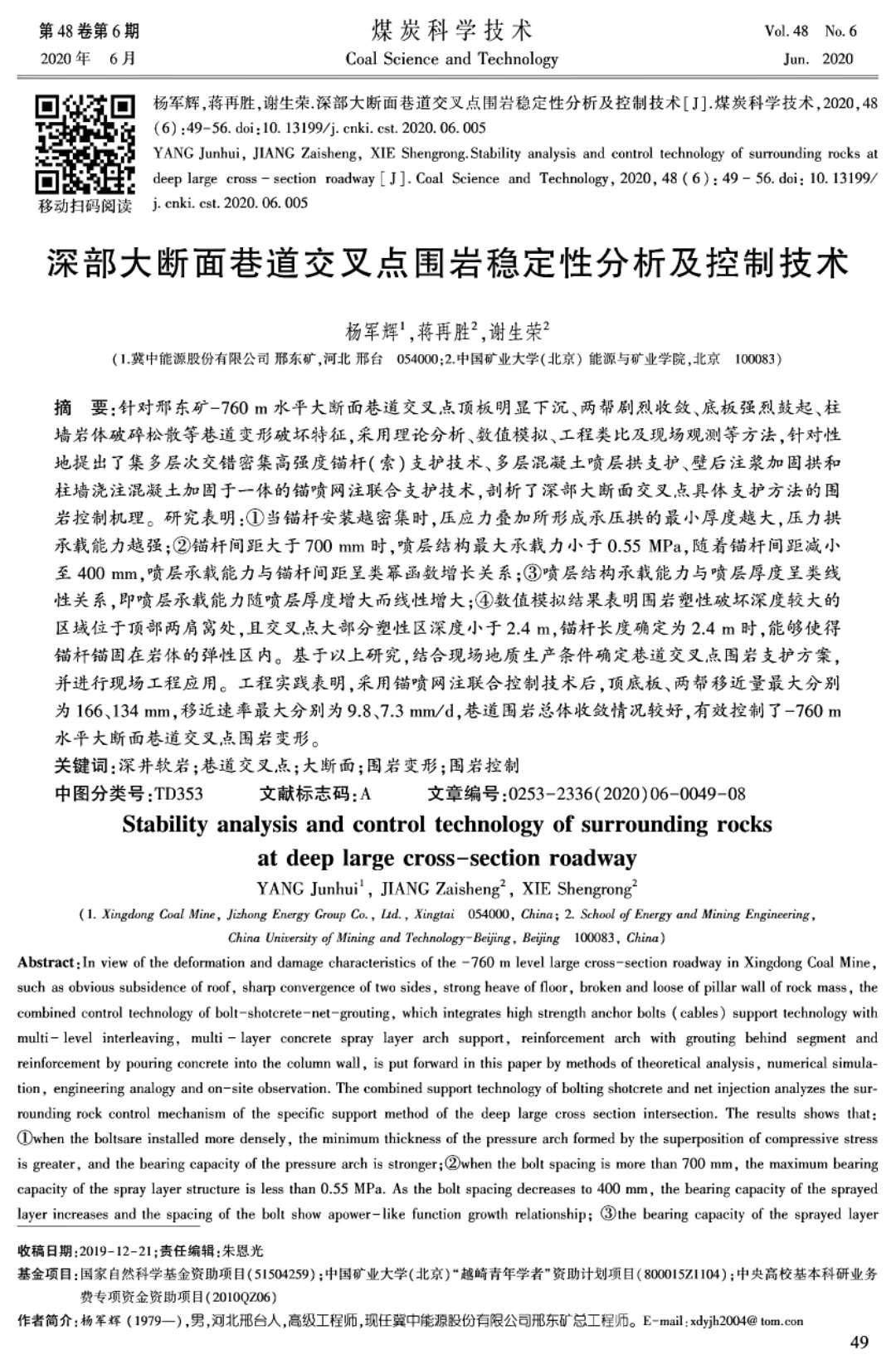 深部大斷面巷道交叉點(diǎn)圍巖穩(wěn)定性分析及控制技術(shù)