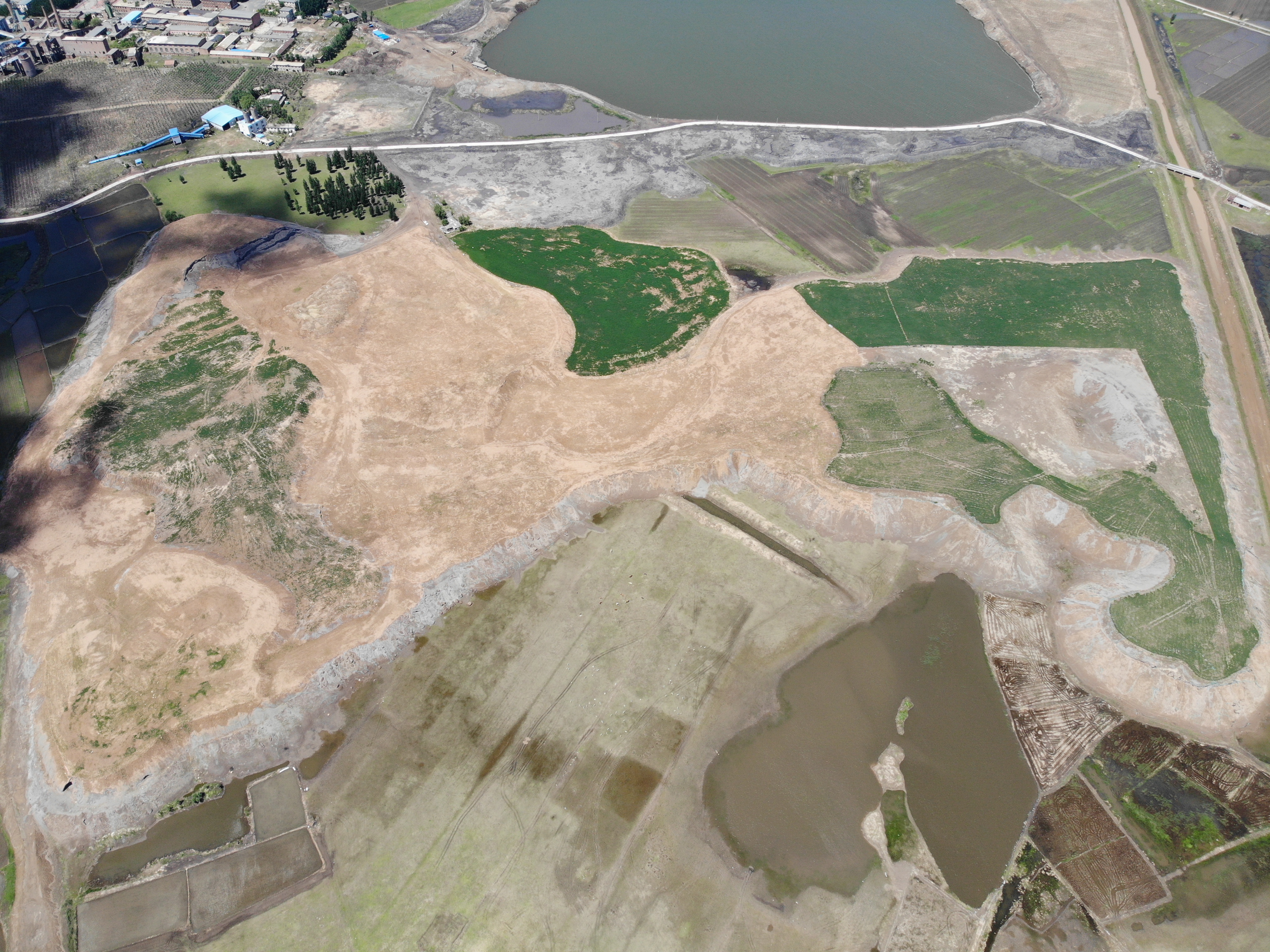 至2019年11月,煤矸石發(fā)電公司完成了大明灰場(chǎng)復(fù)墾工作,工程共分為6期,2018年完成了前3期復(fù)墾工程,2019年完成了后3期復(fù)墾工程,目前大明灰場(chǎng)已實(shí)現(xiàn)全覆蓋,揚(yáng)塵問題得到了有效治理。圖為灰場(chǎng)覆土、整平后的航拍圖。