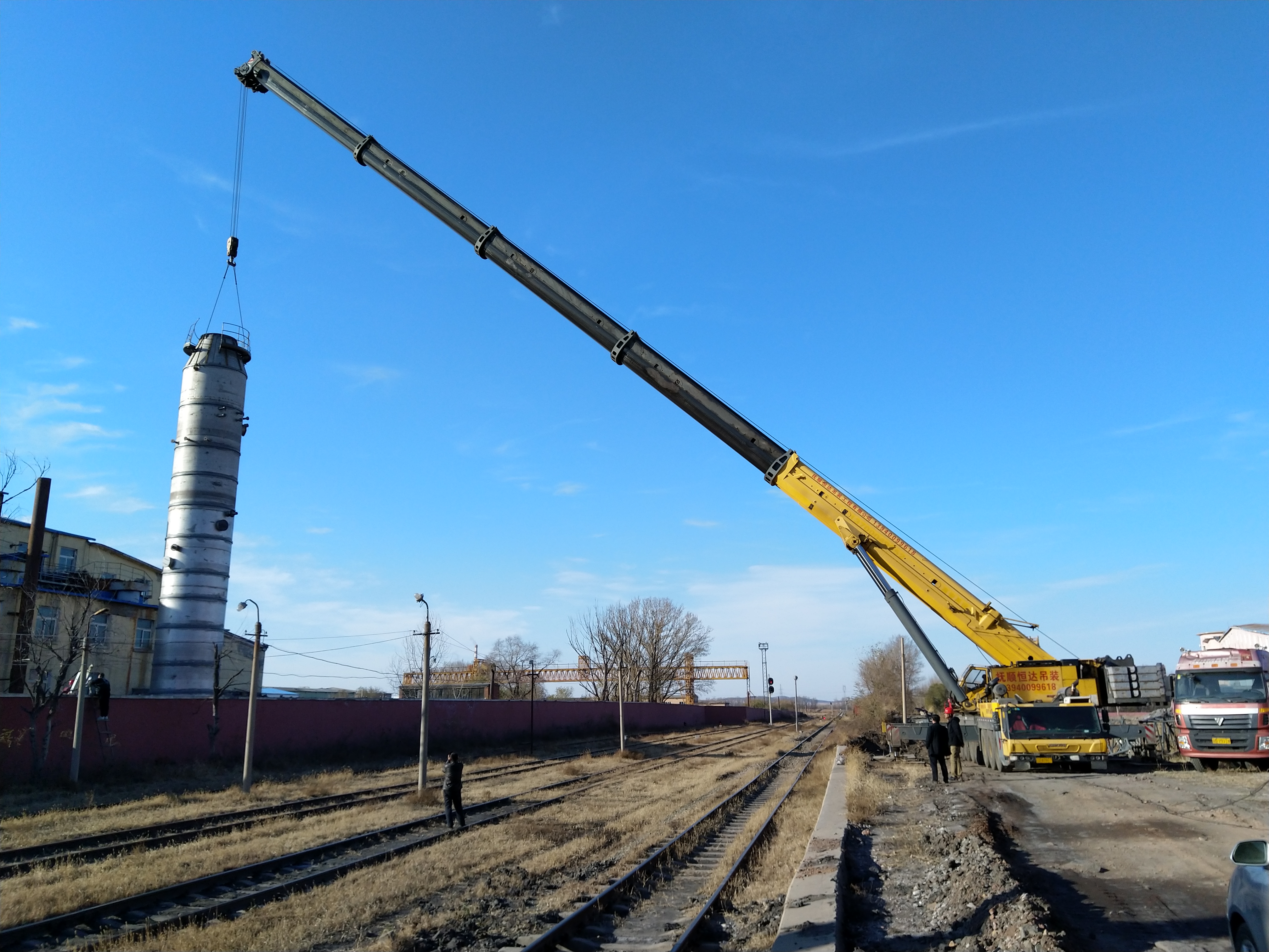 后勤服務保障中心克服施工困難,采用650噸吊車進行長距離吊裝。
