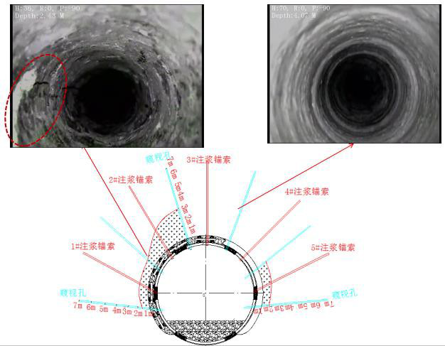 采用鉆孔窺視等方法確定了漿液的擴(kuò)散半徑和漿液的擴(kuò)散深度,再結(jié)合對圍巖力學(xué)參數(shù)、微觀結(jié)構(gòu)、成分以及變形情況等方面的測試結(jié)果,作出了注漿效果評價。