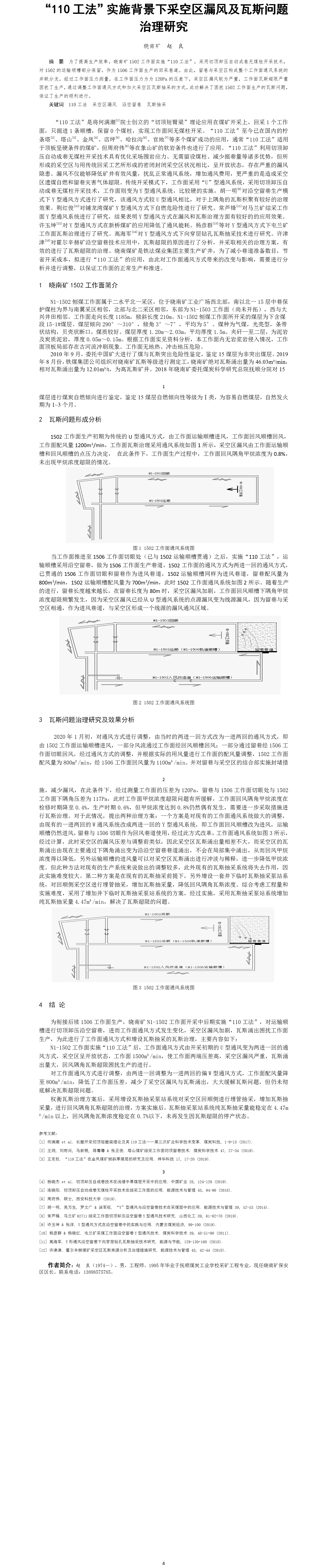 第49屆等級獎?wù)撐?--“110工法”實施背景下采空區(qū)漏風(fēng)及瓦斯問題治理研究