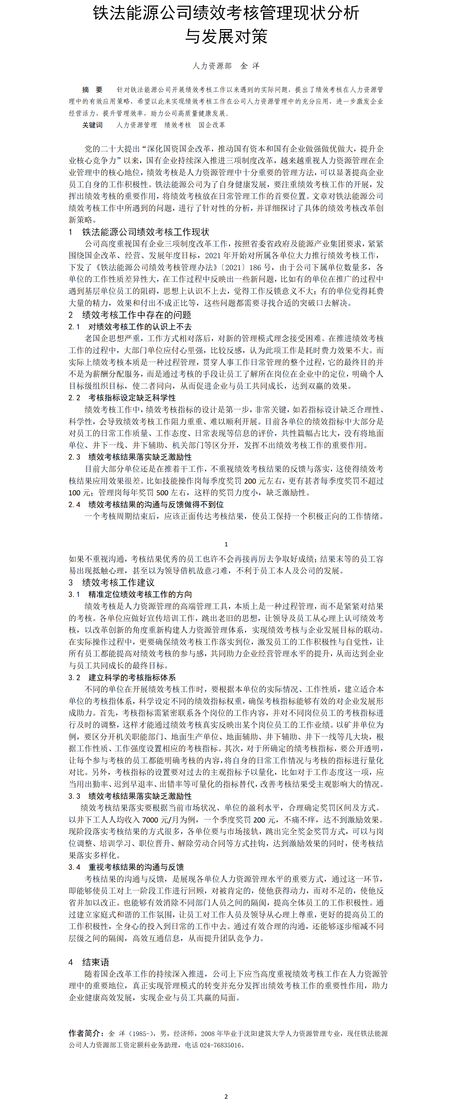 第58屆等級(jí)獎(jiǎng)?wù)撐?-鐵法能源公司績效考核管理現(xiàn)狀分析與發(fā)展對(duì)策