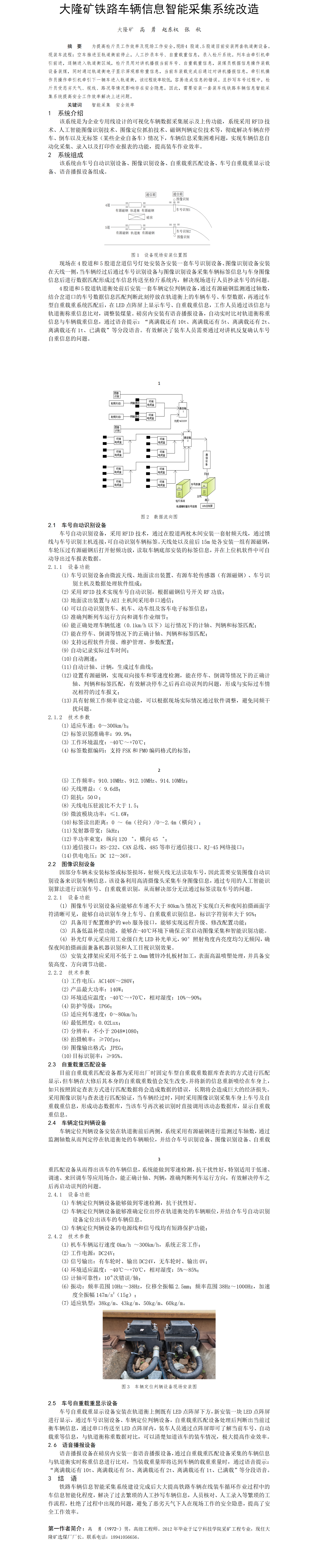 第59屆等級(jí)獎(jiǎng)?wù)撐?--大隆礦鐵路車輛信息智能采集系統(tǒng)改造