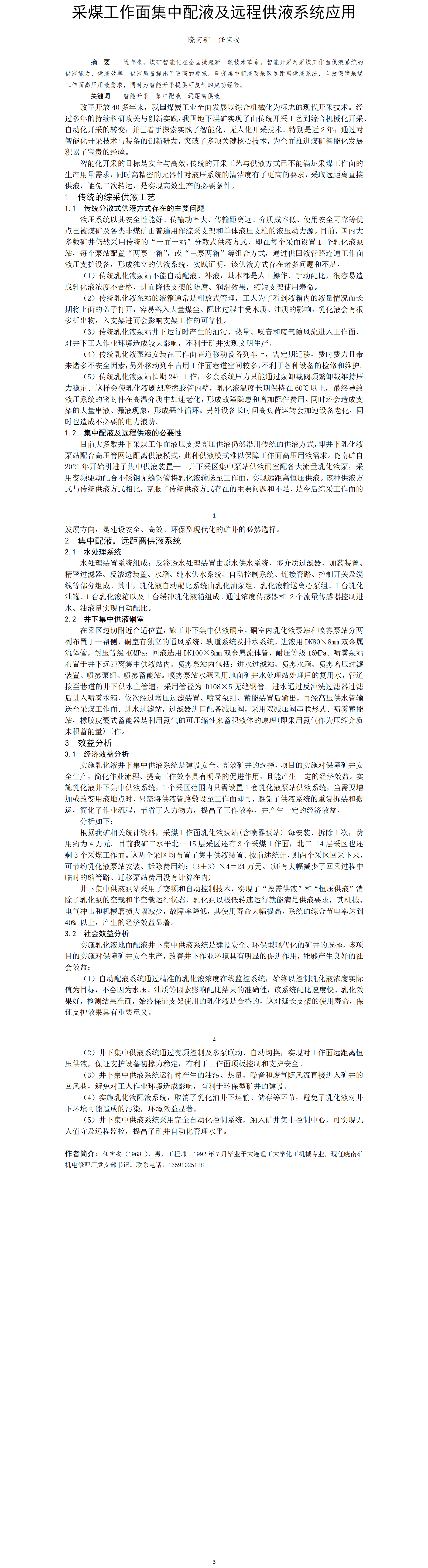 第59屆等級獎?wù)撐?--采煤工作面集中配液及遠程供液系統(tǒng)應(yīng)用