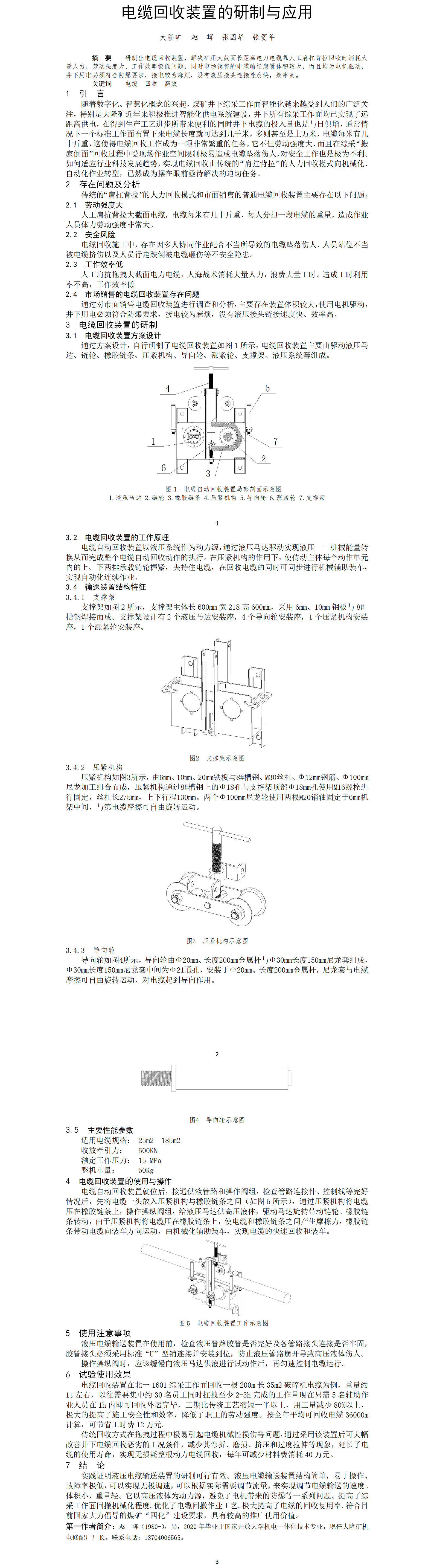 第60屆等級獎?wù)撐?--電纜回收裝置的研制與應(yīng)用