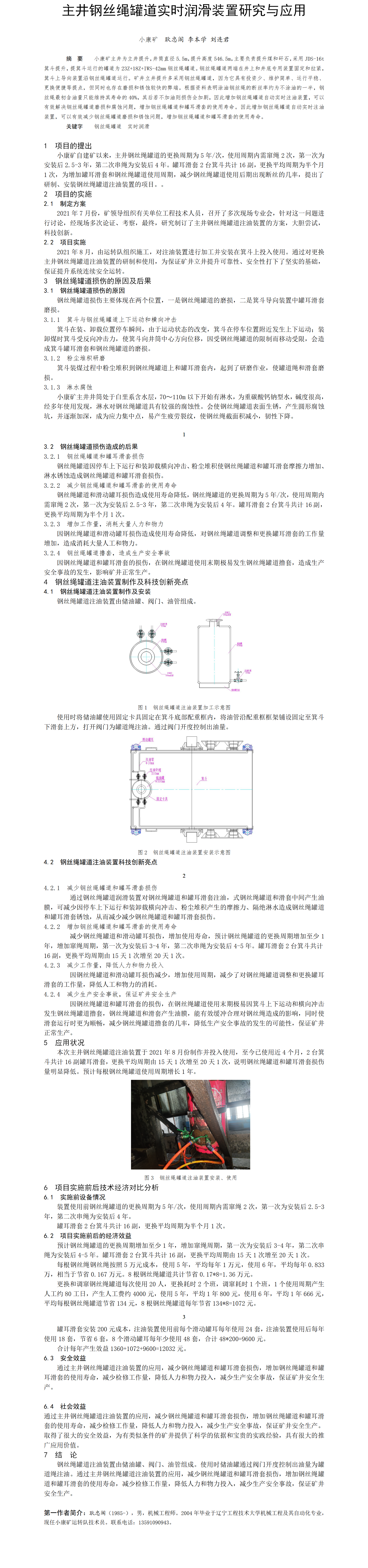 第60屆等級獎論文---主井鋼絲繩罐道實時潤滑裝置研究與應用