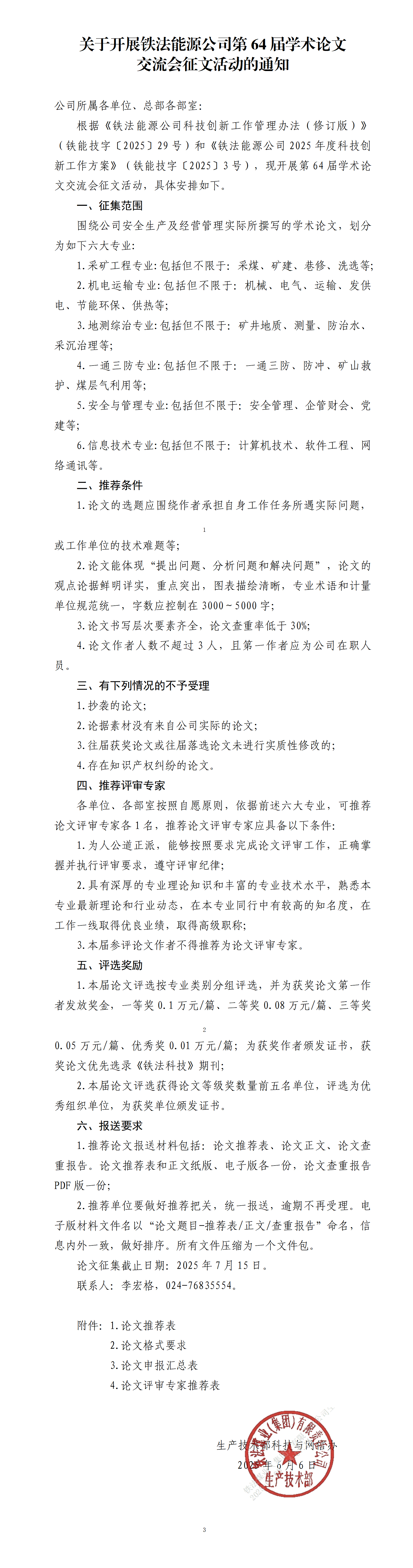 關(guān)于開展鐵法能源公司第64屆學(xué)術(shù)論文交流會征文活動的通知
