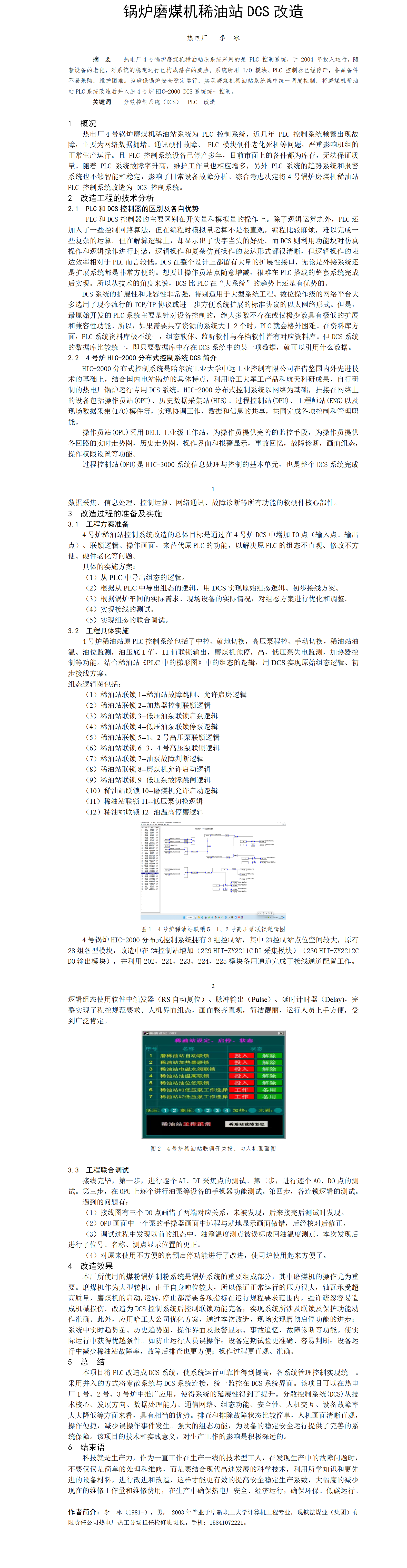 第60屆等級(jí)獎(jiǎng)?wù)撐?--鍋爐磨煤機(jī)稀油站DCS改造
