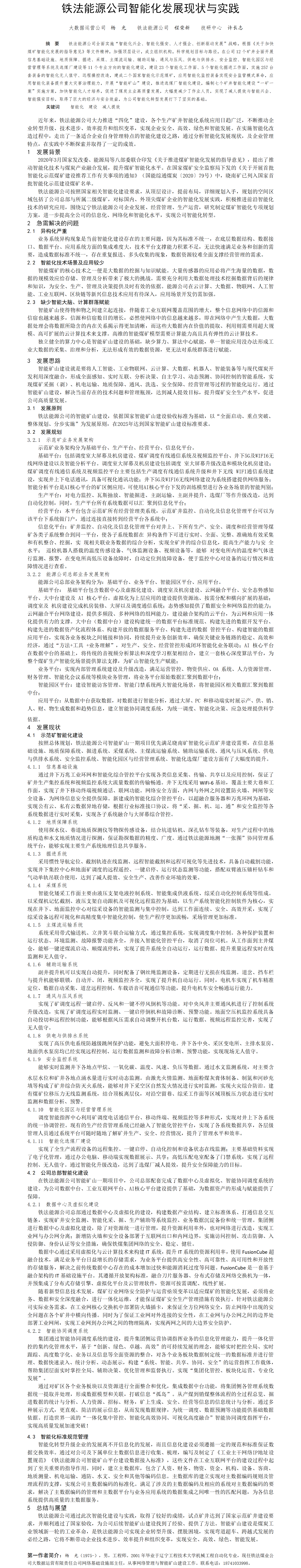 第60屆等級(jí)獎(jiǎng)?wù)撐?--鐵法能源公司智能化發(fā)展現(xiàn)狀與實(shí)踐