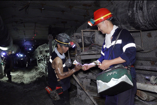 夏季高溫多雨,井下悶熱潮濕,職工出汗量大,對(duì)此,該礦聚焦職工生產(chǎn)生活需求,組織多個(gè)志愿者小組,深入井下南一東1號(hào)措施巷、東二1510、北一1602等作業(yè)地點(diǎn),將雪糕送到每一位職工手中,為職工帶去陣陣清涼。