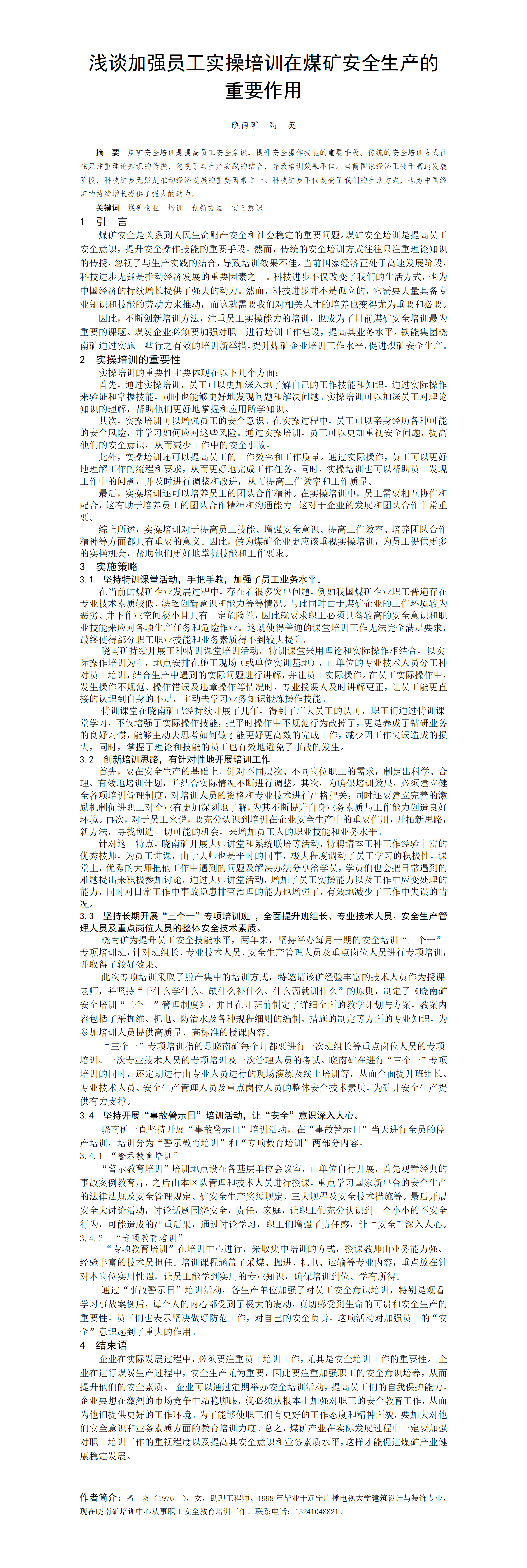 第61屆等級獎?wù)撐?--淺談加強(qiáng)員工實操培訓(xùn)在煤礦安全生產(chǎn)的重要作用