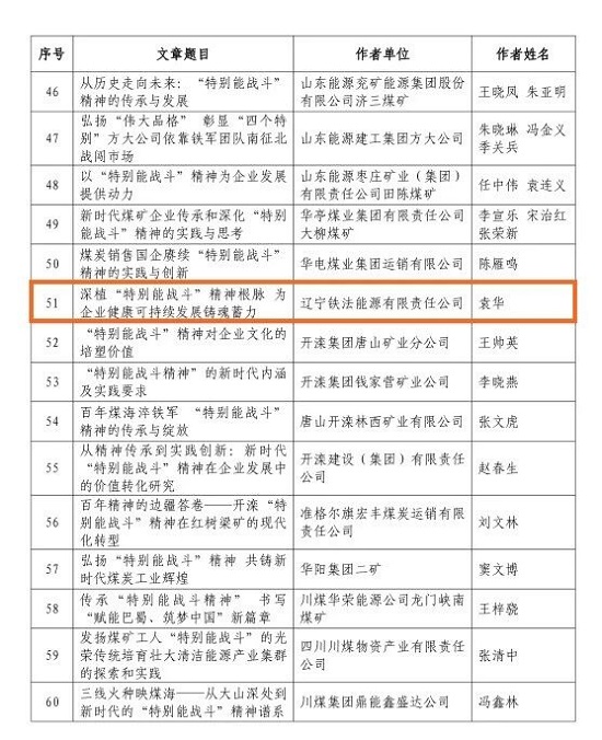 煤炭行業(yè)“特別能戰(zhàn)斗”精神優(yōu)秀論文評選揭曉 公司報送論文榜上有名