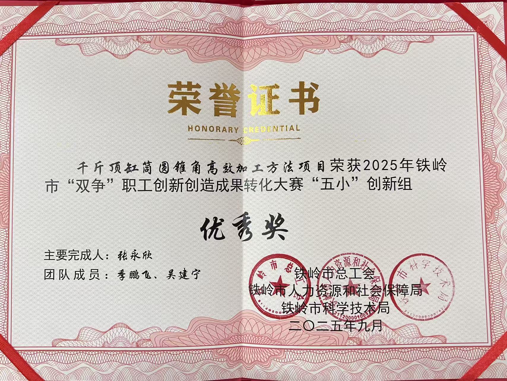 近日,遼寧通用重型機械股份有限公司機加工車間職工張永欣、李鵬飛、吳建寧團隊自主研發(fā)的“自動復位調(diào)心夾具與獨立進給車刀系統(tǒng)”榮獲“2025年鐵嶺市‘雙爭’職工創(chuàng)新創(chuàng)造成果轉(zhuǎn)化大賽”優(yōu)秀獎。